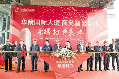 1月9日,華策國際大廈東塔舉辦封頂儀式,華策集團董事局主席楊峰、副主席楊智雄、總裁余道群、行政總監趙日云、營銷策劃中心主任姚政及橫琴新區相關領導出席了封頂儀式。據悉,華策國際大廈整體分為東塔和西塔兩部分,去年11月8日西塔已封頂,隨著東塔順利封頂,華策國際大廈全面封頂,預計今年部分投入使用,明年年底全部投入使用。