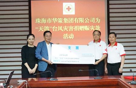 身為民營企業(yè)不忘社會責任,8月24日,心系災(zāi)情的珠海市華策集團有限公司第一時間通過珠海市紅十字會,為“天鴿”強臺風災(zāi)害捐款1000萬元,用于災(zāi)后市政道路的清理和恢復(fù)。副市長、市紅十字會會長閻武代表市紅十字會接受了捐贈并表示,不辜負捐贈企業(yè)的期望,公開透明用好這筆善款,并及時對賬目進行反饋。