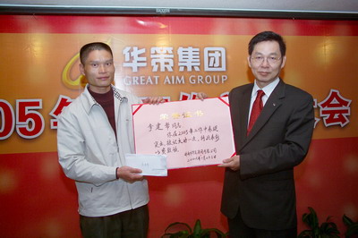 余道群總裁宣布對2005年對集團做出特殊貢獻(xiàn)的謝永生、楊家瓊同志給予重獎。對涌現(xiàn)出來的中山華策置地公司團隊等優(yōu)秀團隊、王偉國等31名先進(jìn)個人以及有突出表現(xiàn)的張寶有、李建幫同志給予表彰獎勵。