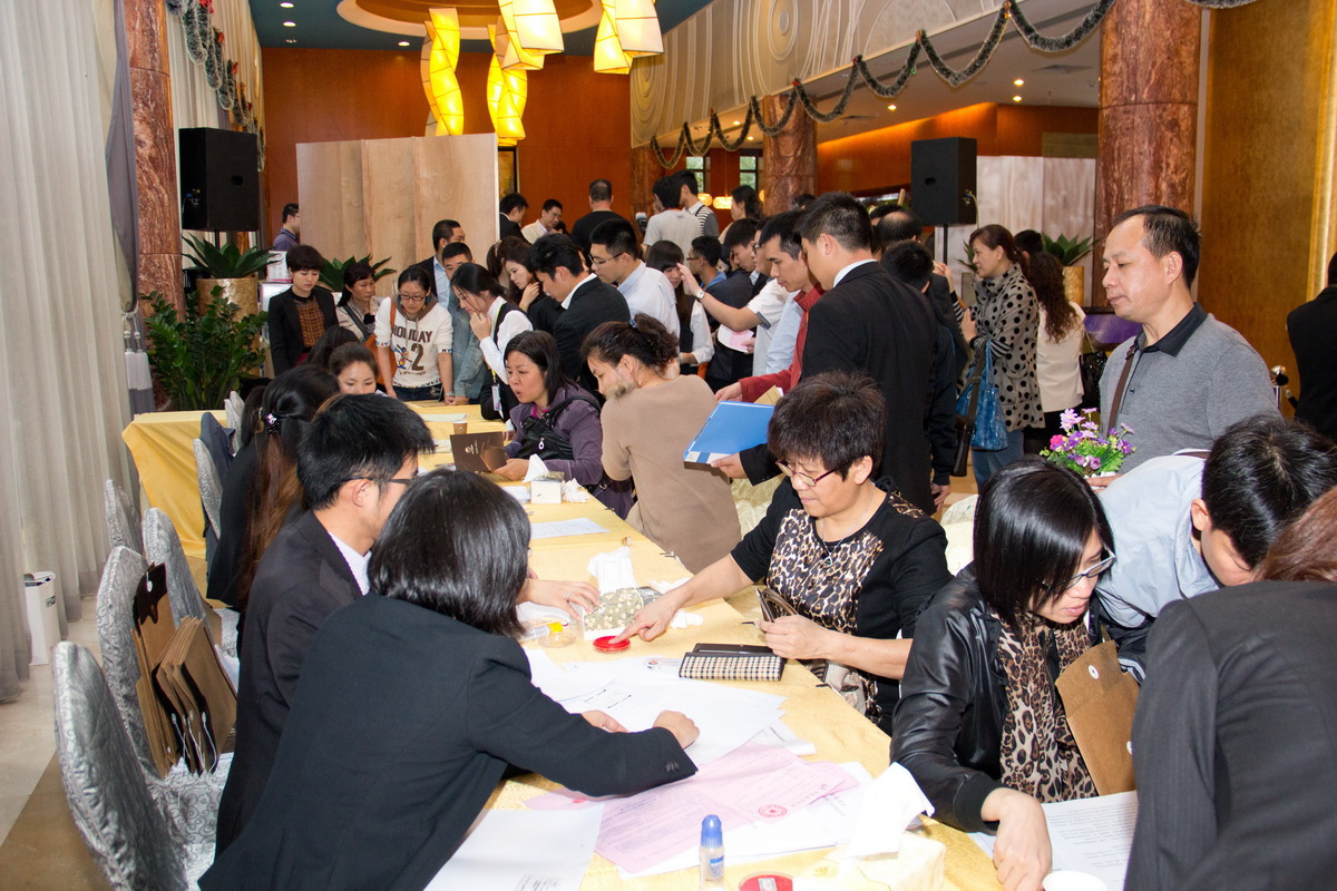 通知上午9點銷售活動正式啟動,而8點不到銷售中心的工作人員都基本到齊了。9點不到,客戶席上早有剛登記完的10多人坐在那等著交錢哩!其中有幾位看上去年過50的老者。