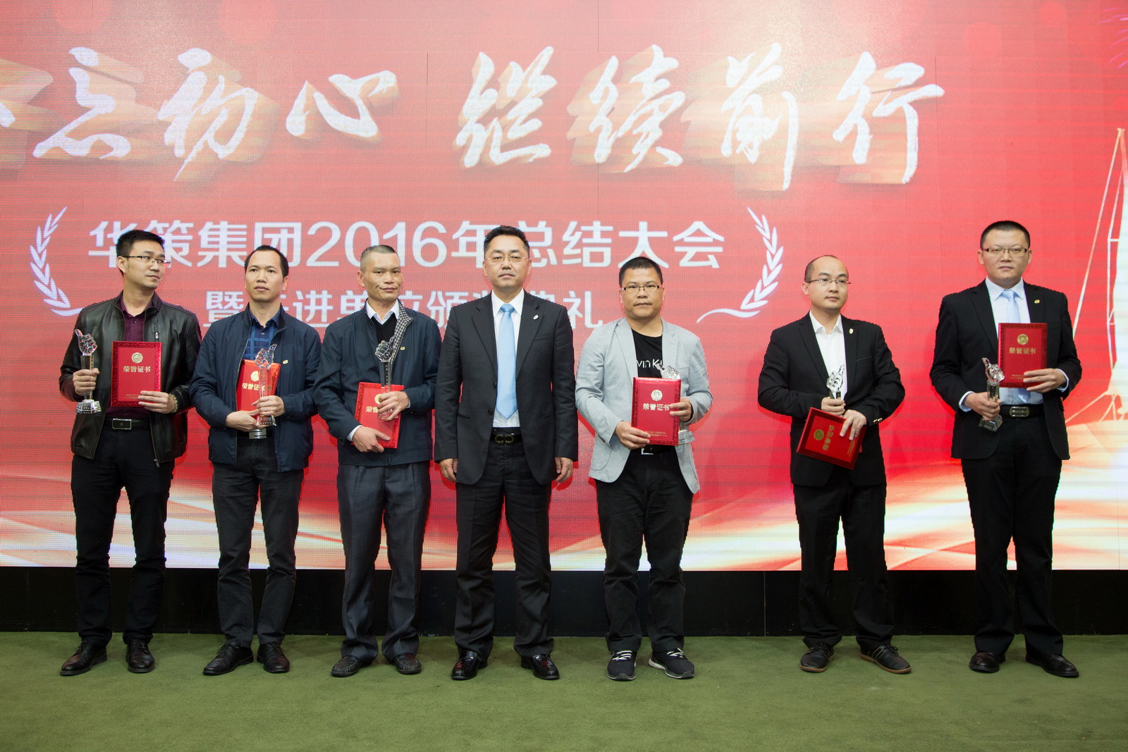 在聽取了地產(chǎn)科技板塊的工作報告和新一年工作安排之后,集團董事局主席楊峰發(fā)表了重要講話。他說,華策成立23年來,他首次為年度工作總結(jié)大會題字——“不忘初心,繼續(xù)前行”,他十分認可這句話。他說,員工的初心,就是老板的責(zé)任。老板初心的實現(xiàn)離不開廣大華策人的同心協(xié)力,離不開廣大華策人對老板工作的支持。華策集團現(xiàn)有的機制乃至薪酬可能不是最好的,但華策人在過去一年做了很多事,無論是地產(chǎn)、高科技還是金融板塊,大家為華策集團創(chuàng)造了驕人的成績。沒有華策人的努力成就不了今天的華策集團,成就不了楊峰的初心。他只能通過華策每年的進步、不斷完善的集團機制回報廣大華策人。2016年的優(yōu)秀員工肯定不只是評選出的這幾十個人,集團的機制是為了更好的管理而設(shè)定的,只有相對的公平,不能做到絕對的公平。希望廣大華策人能夠繼續(xù)支持老板,他也不斷致力于完善集團機制,將華策集團打造成為華策人初心實現(xiàn)的平臺。第二,關(guān)于2017年的工作重點,楊峰主席總結(jié)了8句話。1.政通令達,對政府的新政策要了解,對集團董事局的決策要堅決貫徹;2.強將精兵,強將指的是我們的高層,希望我們的高層敬崗愛崗做好傳幫帶,帶領(lǐng)好我們的員工,因為強將手下無弱兵;3.形胖財健,集團大了,平臺大了,融資規(guī)模和手段更要提升;4.穩(wěn)珠強深,珠海是華策集團的根基,我們要深耕珠海,強大深圳;5.拓展穗惠,堅決貫徹董事局決策拓展廣州、惠州;6.金融輔進,融資是華策的優(yōu)勢,我們要繼續(xù)發(fā)揚這個優(yōu)勢;7.地產(chǎn)抓進度,雙限當(dāng)前,我們要把握機會,以最大的決心抓進度,把房子建好,有多少建多少,把房子建好了再等待機會;8.科技嚴時令,科研有了結(jié)果,我們要把成果轉(zhuǎn)化到商業(yè)中去,科技是時代產(chǎn)物,錯了時令就變成“古董”。