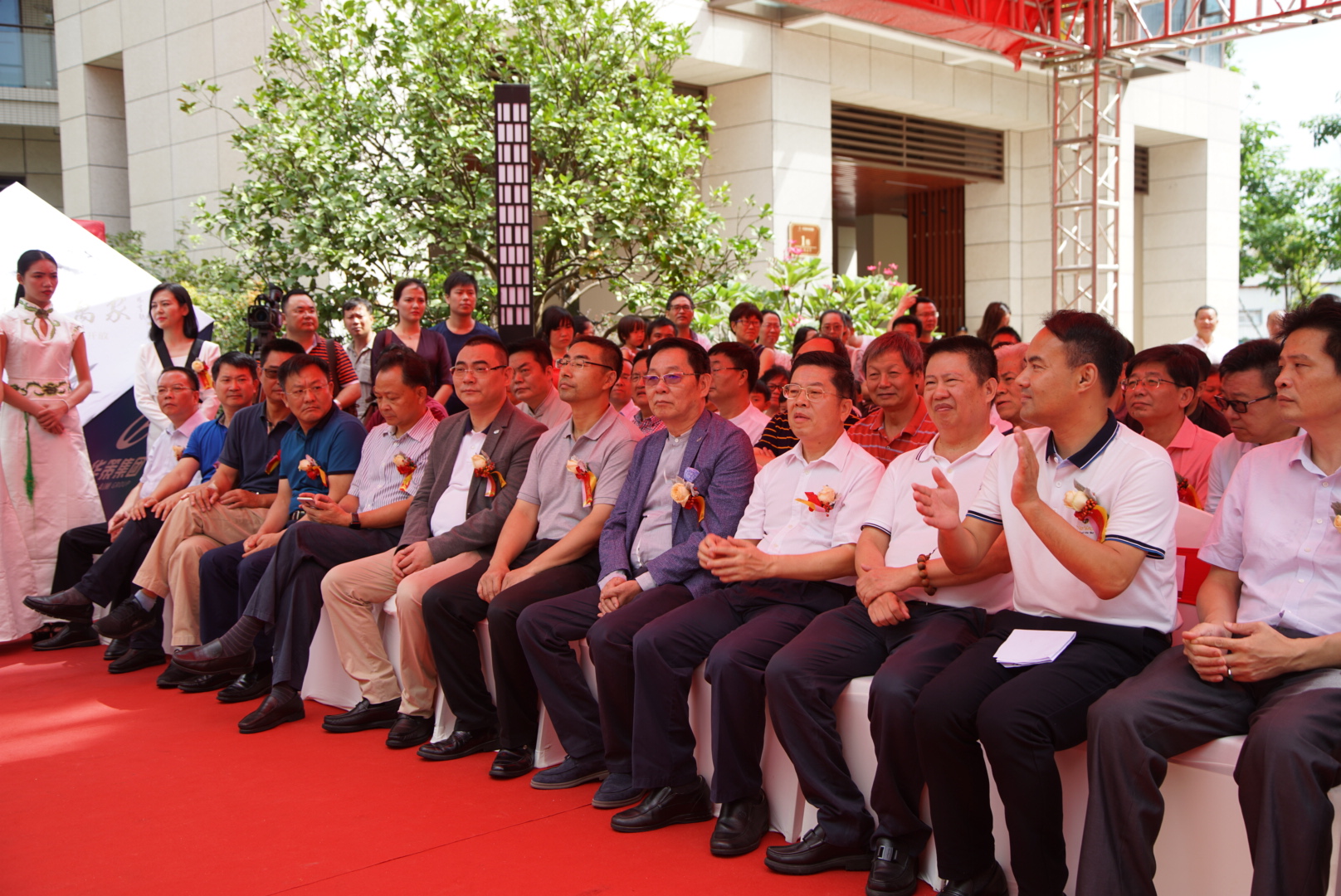當天的啟動儀式上,深圳市龍崗區領導劉德明,中國書法家協會、翰墨薪傳學術指導小組副主任、華策集團董事局主席楊峰,華策集團常務副主席楊智雄、董事局董事姚政、王劍輝等人及中國書法家協會20余位書法名家一起見證了華策中心城文化長廊的落成暨“中國書法進萬家”活動的啟動。龍崗區領導當場對華策集團主動參與中華優秀傳統文化傳承發展工程的舉動表示贊賞,同時呼吁更多企業家向華策集團學習,參與到中華優秀傳統文化傳承發展工程中來。