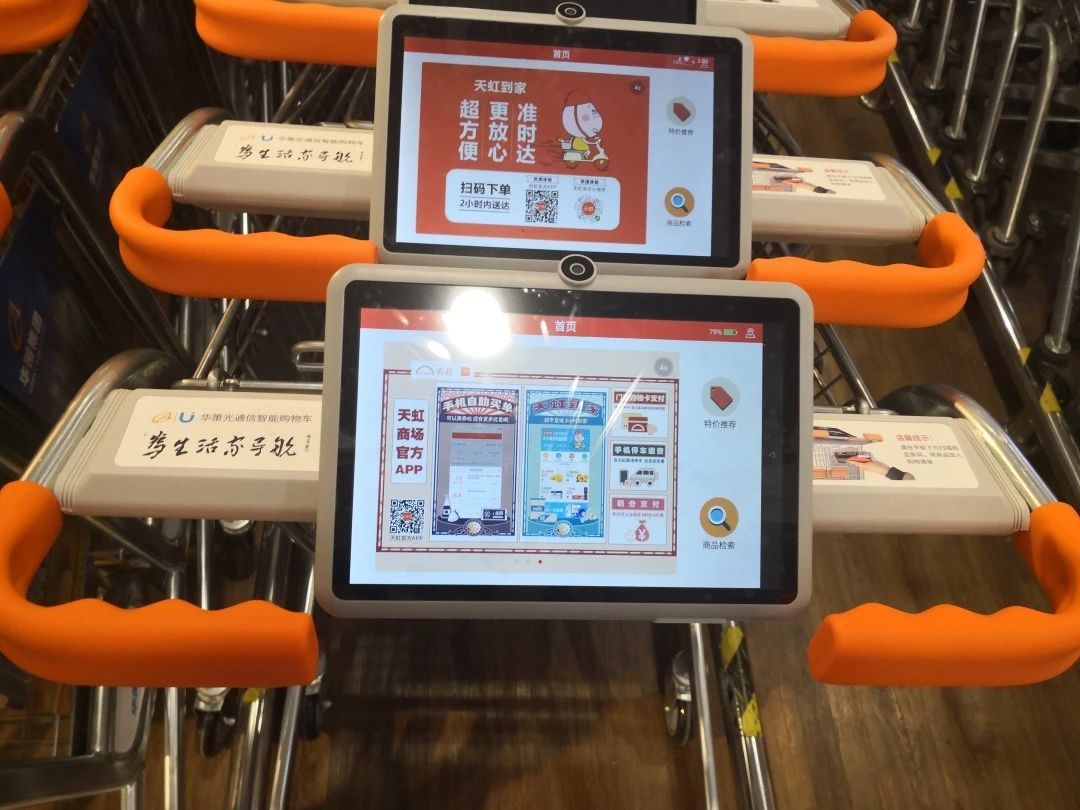 由華策光通信研發(fā)的華策智能購物車,采用厘米級定位核心技術(shù),定位精度達到0.3米以內(nèi),其自主研發(fā)的白光通信技術(shù),擁有眾多國內(nèi)外核心專利,解決了室內(nèi)精準定位這一世界性的難題。獨有的一體式整車設(shè)計,360度定位旋轉(zhuǎn)跟隨,搭配12寸超大高清分辨率顯示屏,續(xù)航12小時以上的大容量電池。對比傳統(tǒng)的超市購物車形象,華麗的設(shè)置帶給購物全新的體驗。