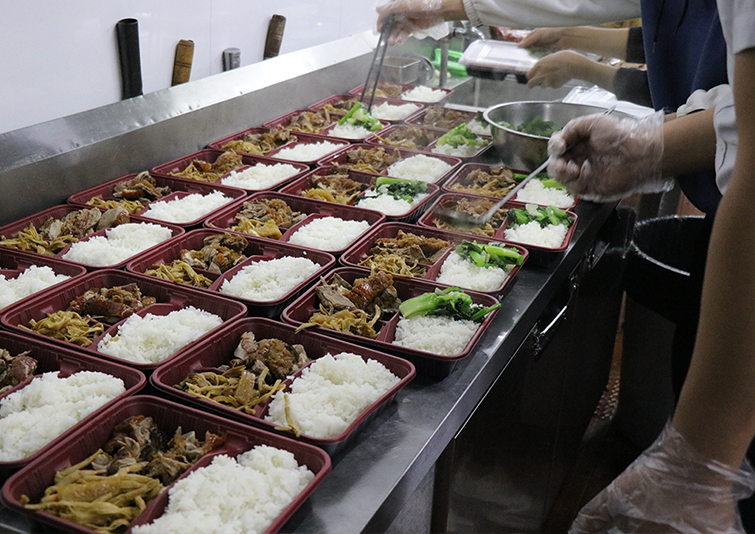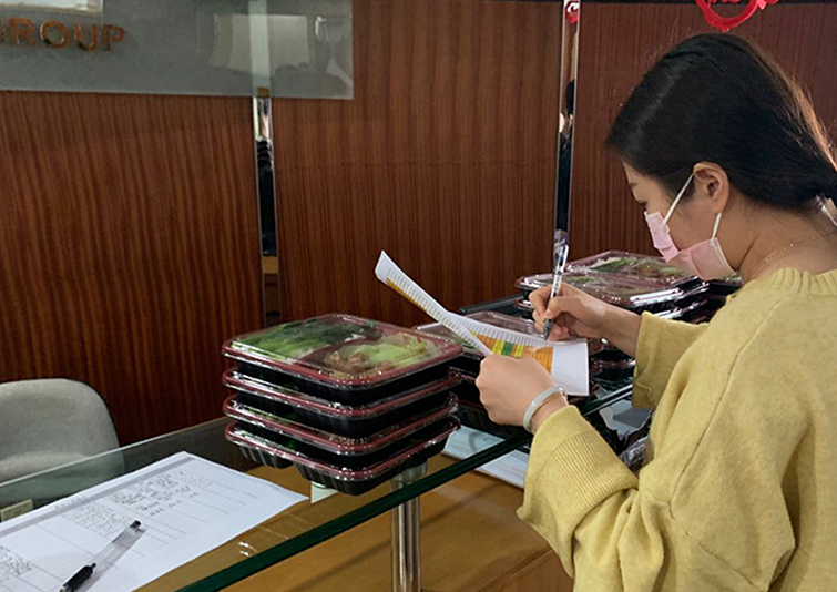▲ 華策南灣生活館統(tǒng)一配送午餐,保障集團(tuán)員工安全就餐