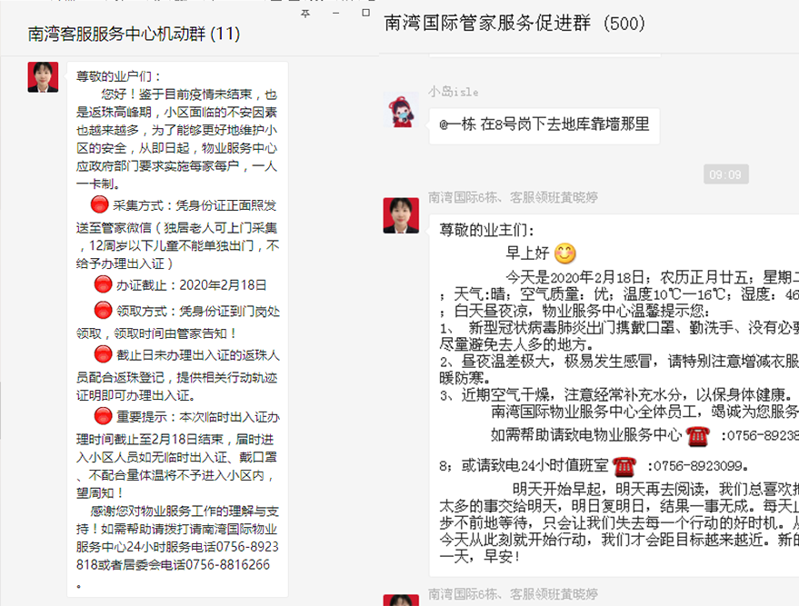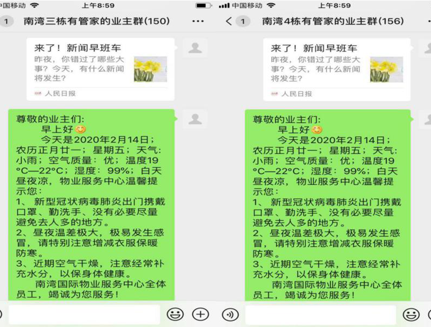 ▲ 華策·南灣國際物業(yè)管家線上與各業(yè)主保持實(shí)時溝通