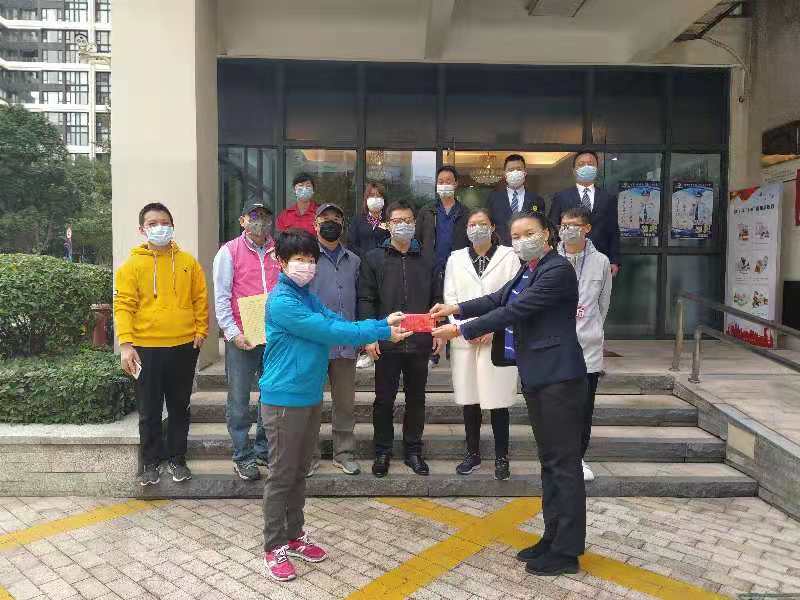 劉景桃面對壓力不逃避、不退縮,時刻牢記“以業(yè)主至上,服務(wù)第一”。主動對居家隔離業(yè)主提供上門服務(wù),并通過每日詢問各業(yè)主身體狀況、跟進(jìn)日常生活用品需求,處理門口垃圾等等,讓業(yè)主倍感溫暖。部分業(yè)主向他提出幫忙取快遞、換煤氣罐等請求時,他干脆利落地戴上口罩第一時間親自送到家門口,得到業(yè)主的由衷感謝。近一個月以來,劉景桃向來毫不猶豫,沖鋒在前,和團(tuán)隊(duì)一起鑄就堅(jiān)實(shí)又溫暖的戰(zhàn)“疫”防線。他覺得自己做的這件事很有意義:“住戶需要我們,我也想為抗疫出一份力。”
