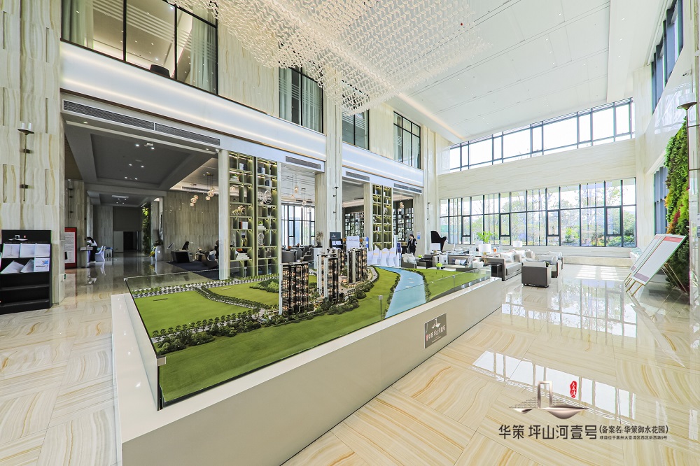 華策坪山河壹號營銷中心沙盤區(qū)和洽談區(qū)人流涌動