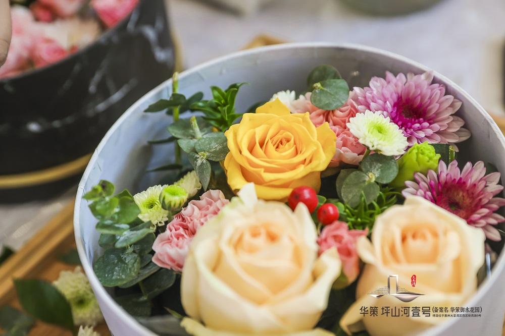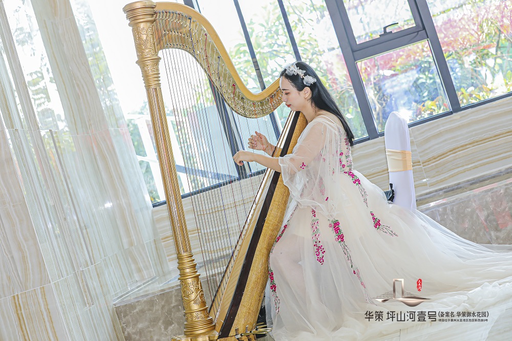 現(xiàn)場精彩紛呈,驚喜不斷。營銷中心設(shè)計感十足,每個細(xì)節(jié)都體現(xiàn)著項目的用心之至。入口處精心布置了豐富的金屬花箱 Flower Box、定制金屬框以及繽紛的鮮花束;移步而進(jìn),備有精美茶歇供現(xiàn)場來賓品嘗,加之極具儀式感的創(chuàng)意簽到,為項目人文美學(xué)的盛啟增添一抹色彩。鮮花禮盒定制的尊貴體驗、專業(yè)花藝師的現(xiàn)場教學(xué),豎琴優(yōu)雅的表演,為來賓營造活動氛圍,獻(xiàn)上一場視聽美學(xué)盛宴,感受華策集團(tuán)的世界級審美標(biāo)準(zhǔn)和匠心品質(zhì)。