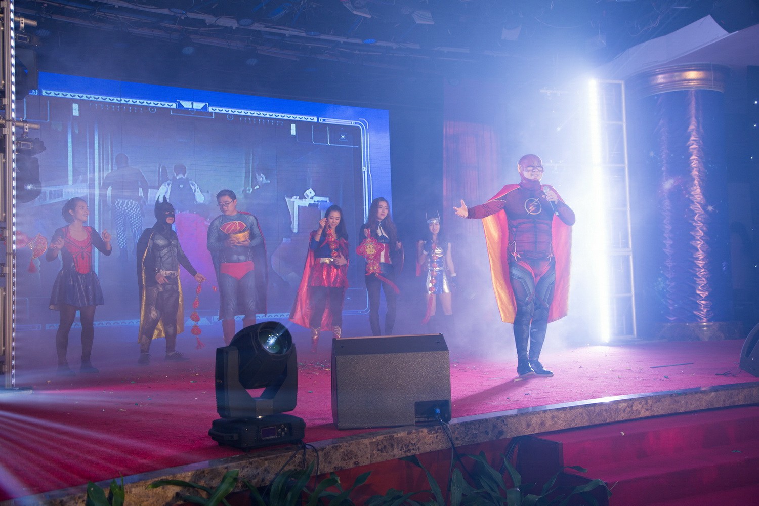 晚會上,華策人還用特別的形式展現了華策文化。朗誦配沙畫表演《腳踏科技路,不忘樹藤心》,用詩句描繪、用沙畫勾勒、用聲色的完美結合講述了華策的發展史;剛柔并濟的《樹與藤》舞蹈,以獨特形式展現了華策的樹藤文化,斗志昂揚、氣勢磅礴,巾幗風采不讓須眉;詩詞配舞蹈表演《俯首甘為孺子牛》,由區域銷售總監曾文雄作詞,情文并茂、蕩氣回腸,一詞一句都展現了華策的特有文化;視頻配歌曲聯唱《華策超級英雄之平凡英雄》以獨特立意拍攝視頻,收錄了華策集團每個平凡英雄的笑臉,情節風趣、內容深刻,不亞于好萊塢大片。
