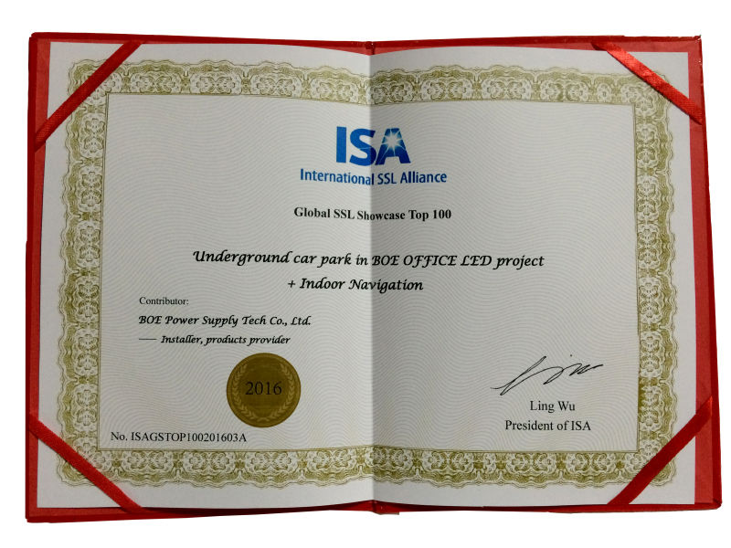 2016年11月,華策集團(tuán)科技板塊旗下的珠海橫琴華策光通信科技有限公司為京東方大樓開發(fā)的“地下停車場節(jié)能+LED 室內(nèi)導(dǎo)航項目”在“2016全球半導(dǎo)體照明示范工程100佳”專家評審委員會評審榮獲第三名。